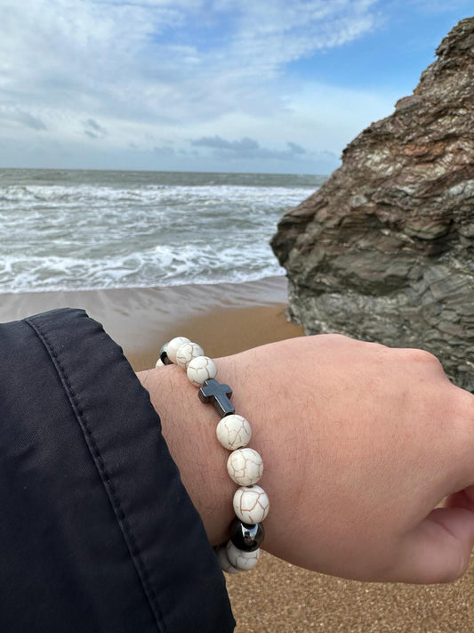BRACELET CROIX MARBRE GRIS FONCÉ